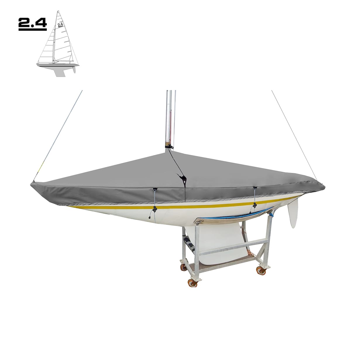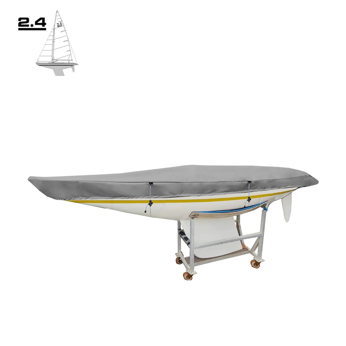 - Eine Reihe von Abdeckungen, die speziell für 2,4 mR-Segelkielboote entwickelt wurden