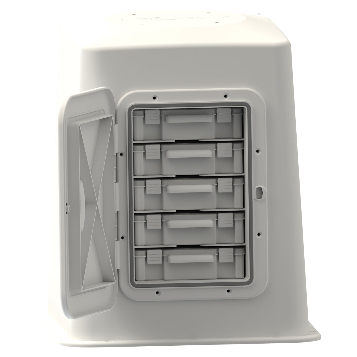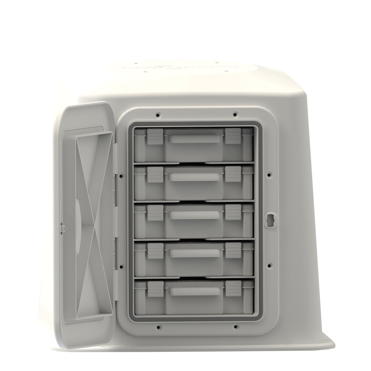 - Schwere, benutzerfreundliche Tür – Die starre Konstruktion widersteht Verformung und Verschleiß und bietet auch bei häufiger Nutzung einen zuverlässigen, leichtgängigen Zugriff.