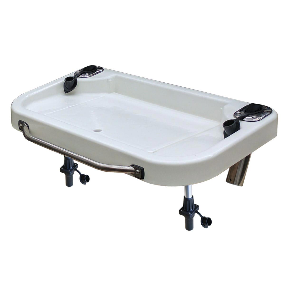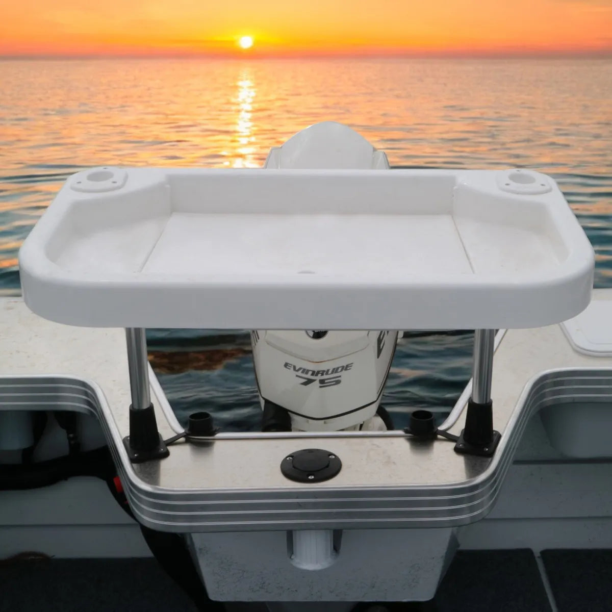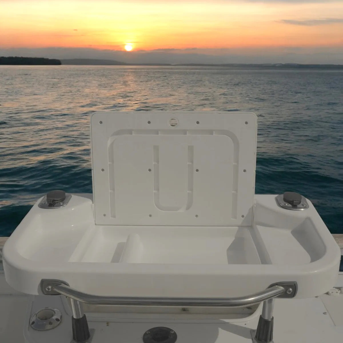 Unsere Deluxe-Köderbretter verfügen über zwei integrierte 30-Grad-Angelrutenhalter und bieten großzügigen Platz zum Filetieren und Schneiden. Sie verfügen über einen Klappdeckel mit darunterliegendem Spülbecken und einem Abflussloch für einen 25-mm-Schlauch (Schlauch nicht im Lieferumfang enthalten), der dabei hilft, Fisch- und Köderabfälle über die Seite und vom Boot weg zu leiten.