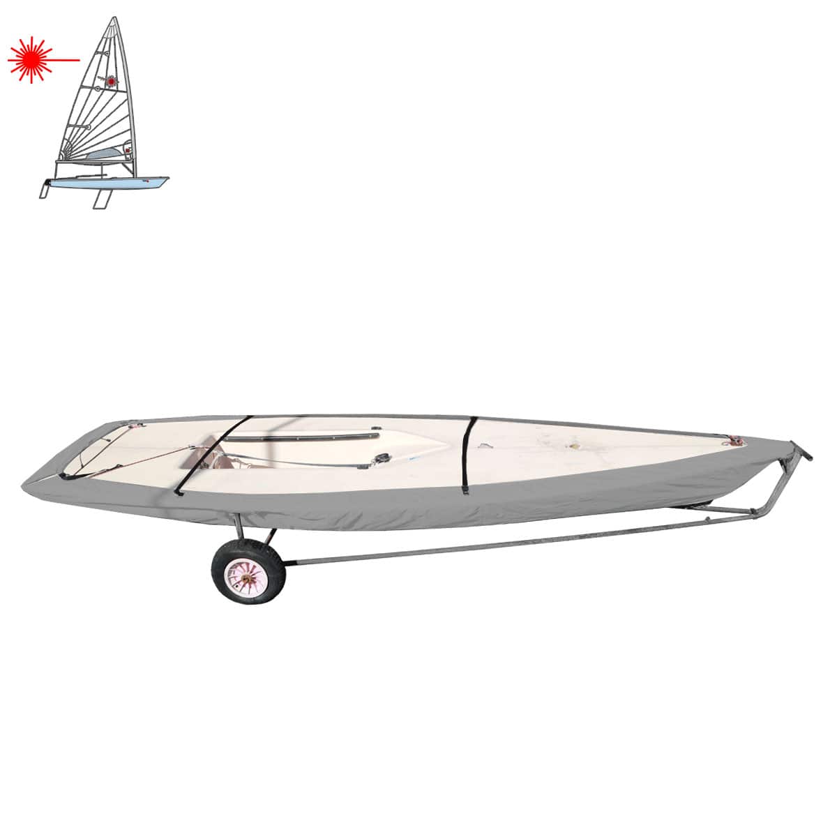 - Eine Reihe von One-Design-Abdeckungen, die speziell für LASER-Schlauchboote hergestellt wurden