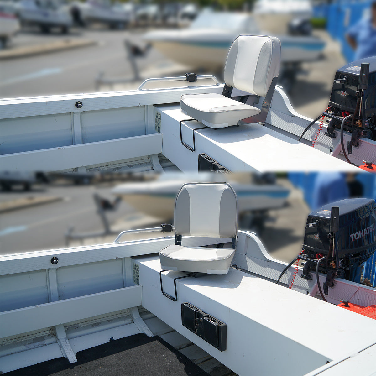 La abrazadera para asiento de barco Oceansouth es un soporte de montaje versátil que se sujeta con pinza para asientos marinos, ideal para botes jon, botes de aluminio y configuraciones de cubierta abierta. Se adapta a superficies planas para asientos de entre 200 mm y 530 mm de ancho.