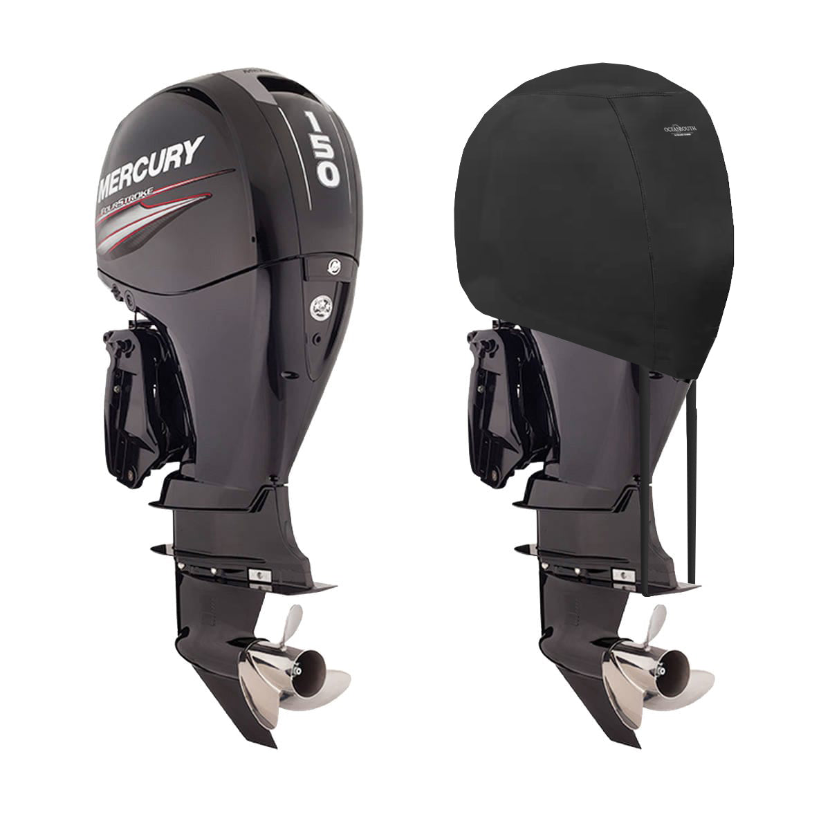Equipped with an elastic hem and an ingenious Twin Rope Cleat that secures the storage cover tightly around the base of the cowling, our covers provide a secure fit that stays in place even during transportation on the road at high speeds. Compatible with the Oceansouth Mercury Full Storage Cover which is designed to fit on over the top of the Mercury Cowling Storage Cover and protect the entire outboard from top to prop.