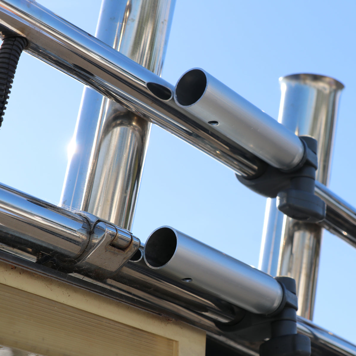 Built for versatility, it’s compatible with Oceansouth clamp-on rod racks and most 25mm stainless steel or aluminium frames—making it a great addition to a wide range of vessels.